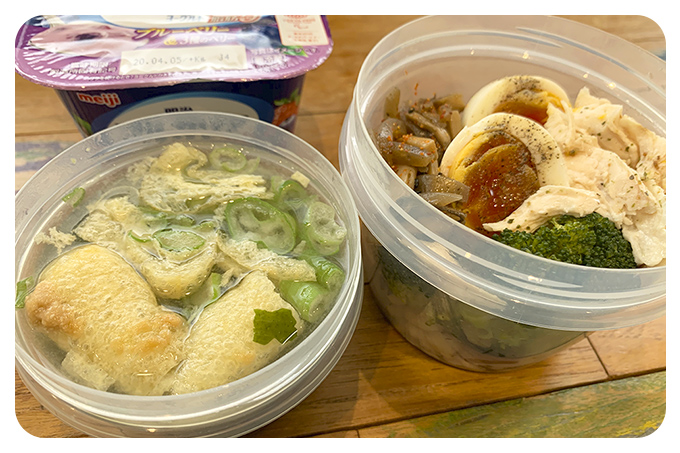お味噌汁は味噌と具材のみ入れてきて、会社でお湯を注ぐだけの簡単調理法なんだそう。真似したい~!
