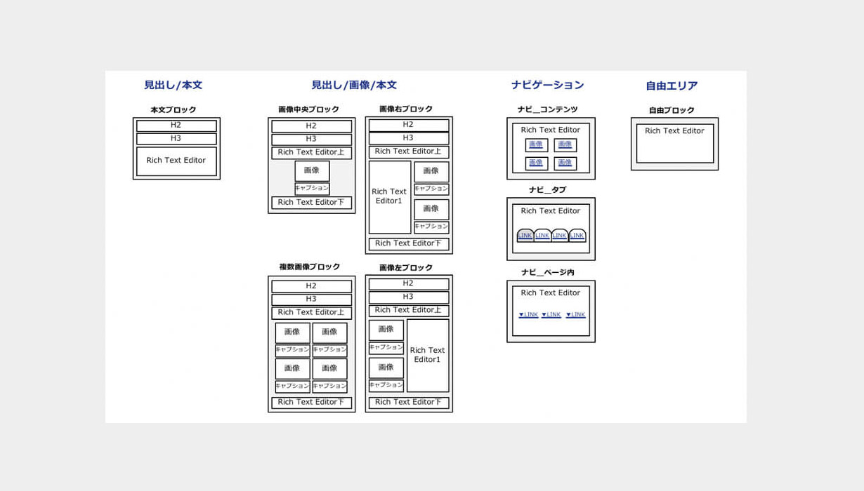過去、サイト品質を維持・改善するための十分な運用基盤を作れていないことが大きな課題でした。アクアリングは、新たに導入した大規模サイト向けプラットフォーム型CMSを活用するため、エレメントを組み合わせて望み通りのレイアウトを実現する独自のフレームワークを開発。グローバル拠点に数多くのWeb担当者がいる中で、マークアップ不要で自由度の高い運用を実現しました。