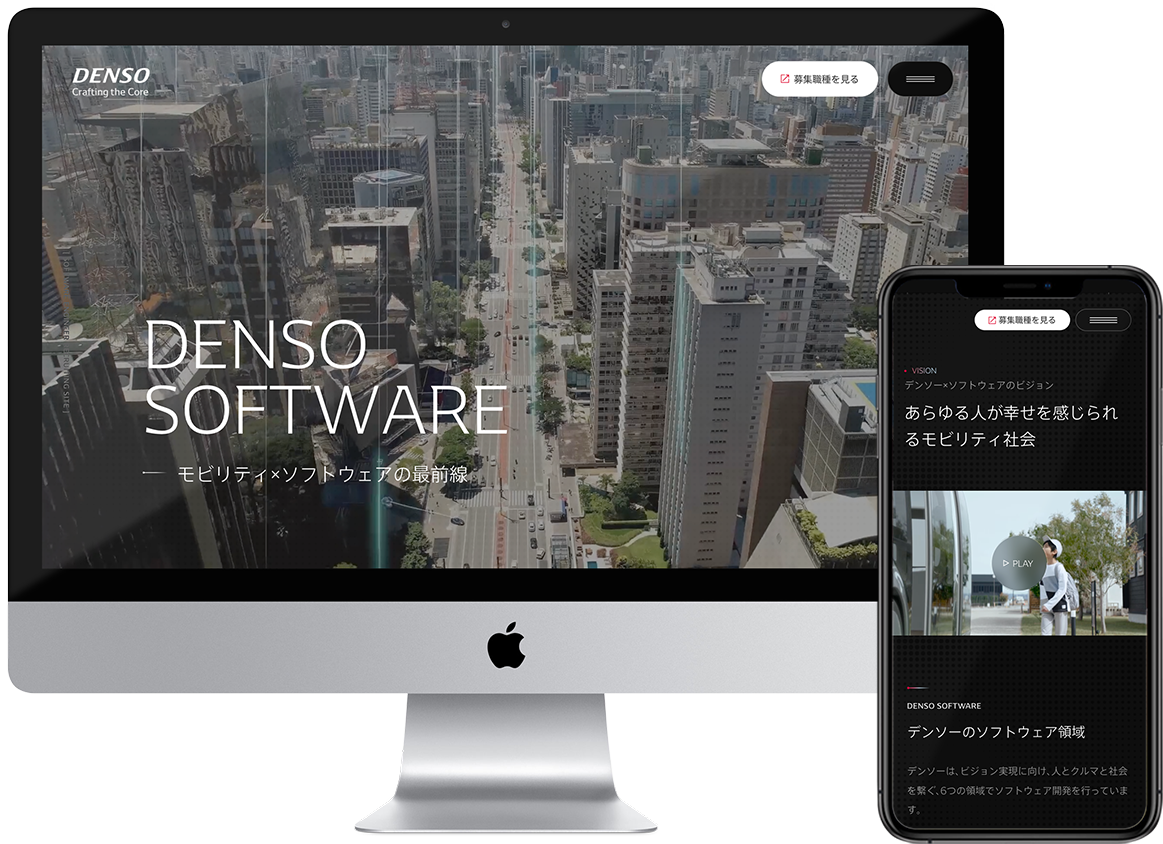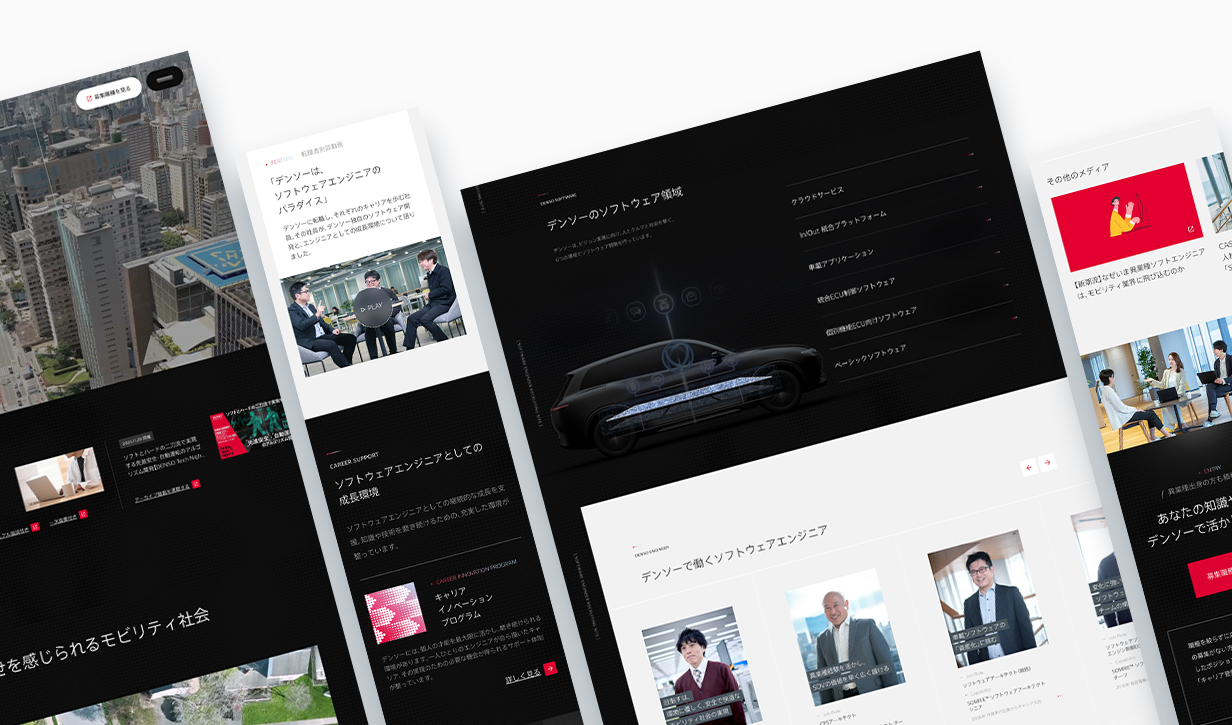 Webサイトでは、ターゲットとなるエンジニアが求める情報を、網羅的かつ分かりやすく可視化しました。具体的には、ビジョンを実現する幅広いソフトウェア領域や、エンジニア紹介、成長を後押しする環境・制度などを掲載しています。