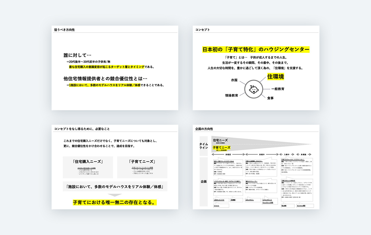 本プロジェクトでは、住宅展示場のコンセプト立案から参画。ターゲットは、地域特性を強く意識し「20~30代子育て層」に特化しました。また、住宅展示場の強みである「リアルな住宅体験」をデジタルで拡張しました。