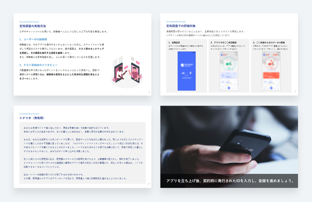海外の新興国を対象に、新たなサービスの構想を描くDENSO様。そのPoCで必要となるスマートフォンアプリのUI/UXの検証工程から、UIデザインまでを担当させていただきました。