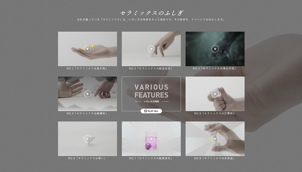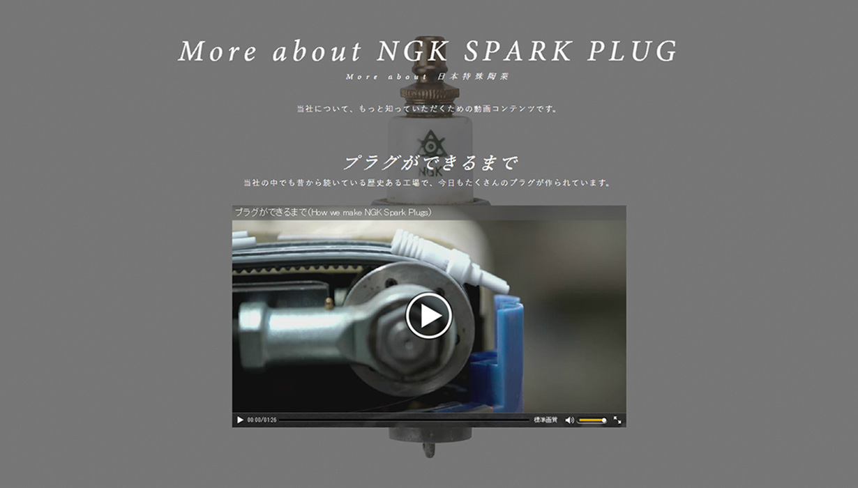 80周年を迎えるにあたり、式典にも活用できる社史動画、世界シェアNo.1のスパークプラグの製造工程をリズミカルな音楽とともに表現したプラグ製造動画、セラミック素材の魅力を示す表現にこだわった動画の3点を作成。いずれも英語版を作成し、世界から共感を得られる動画となっています。