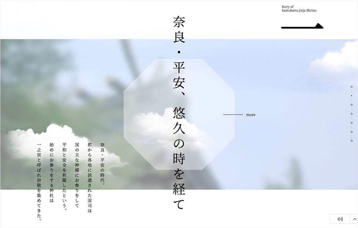 全国唯一の八方除の守護神として、約1600年の歴史を持つ寒川神社(さむかわじんじゃ)。動画やアニメーション、サウンドを効果的に使用し、寒川神社のように訪れた人々に「崇敬」される佇まいを持ったサイトを目指しました。海外ユーザーに向けた多言語対応にも力を入れ、日本の神道の厳かな空気感を伝えています。