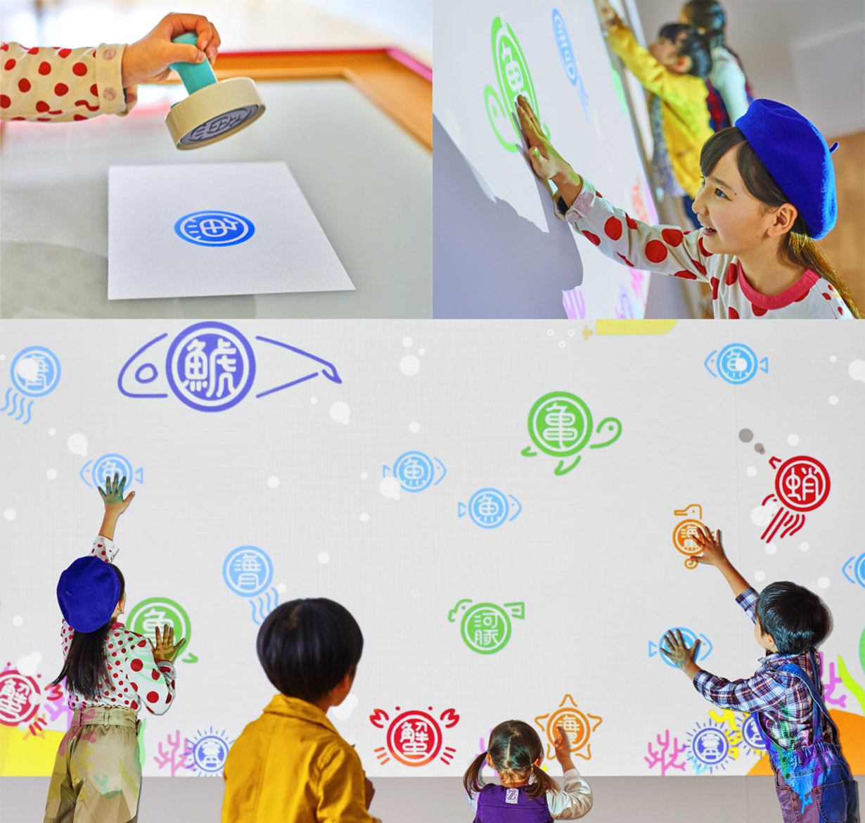 ショップ内で体験できるシヤチハタ製スタンプを使ったデジタルコンテンツ「スタンプワールド」を制作しました。スタンプで捺(お)した印影が壁に投影されてキャラクターに変身し動き出し、触って遊べるインタラクティブなコンテンツです。ショップのメインコンテンツの1つとして各種メディアに取り上げられ、来店・販売促進に寄与することができました。
