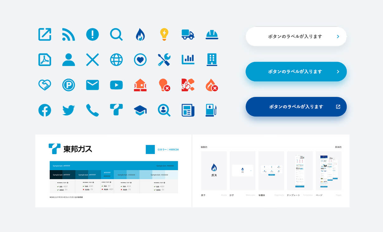 多くの部署がコンテンツ管理に携わり長年の運用と共にサイトが煩雑化している背景を考慮し、主要なUIにおいては、アクセシビリティ対応(JIS X 8341-3:2016 )A以上を基準に、アイコン・コンポーネント単位で定義を行い、それらを満たしたモジュールでページ構築を行うことで、変化に強固なサイト設計を行いました。このUIをグループ会社で利用しレギュレーションを統一することで、サイトの品質を保ちつつ、一貫性のある印象を担保できるよう考慮しています。