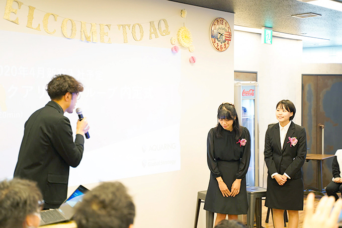来年度はアクアリングの新卒として1名、アクアリング・グローバルストラテジーの新卒として1名の合計2人を迎えられることとなりました。グローバルストラテジーは初の新卒なんですよ!
